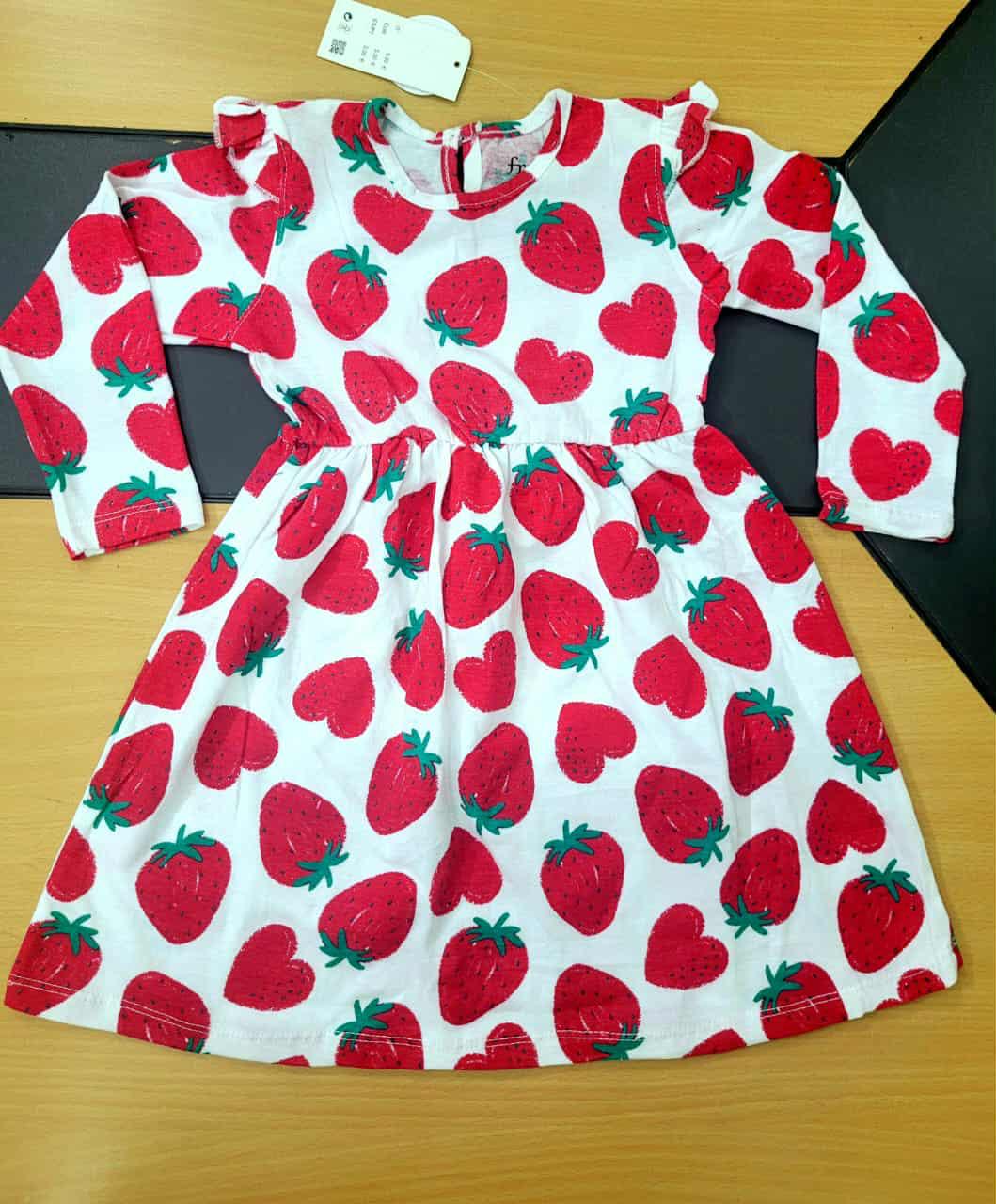 সফট কটন ফেব্রিক দিয়ে তৈরি এই ফ্রকটি আপনার বাচ্চার ক্যাজুয়াল ব্যবহারের জন্য সেরা। এর সুন্দর স্ট্রবেরি ও হার্ট প্রিন্ট এবং কাঁধের রাফেল ডিজাইন ড্রেসটিতে একটি কিউট লুক দেয়। ফুল স্লিভ হওয়ায় এটি যেকোনো ঋতুতে বেশ আরামদায়ক।